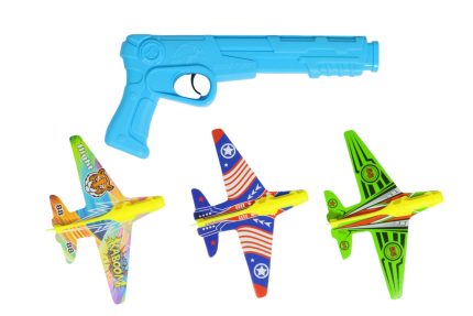 Este increíble set con un lanzador de aviones fabricados de plástico y sus alas echas de cartón espuma con diseño