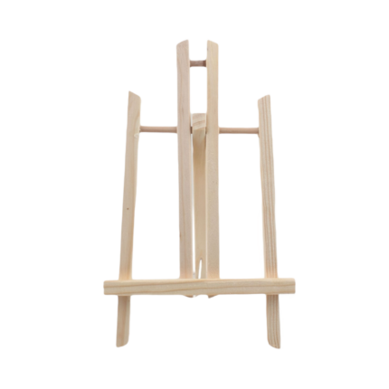 Atril caballete 13cm + bastidor con madera con lienzo de 7x7cm (Stock con defecto)