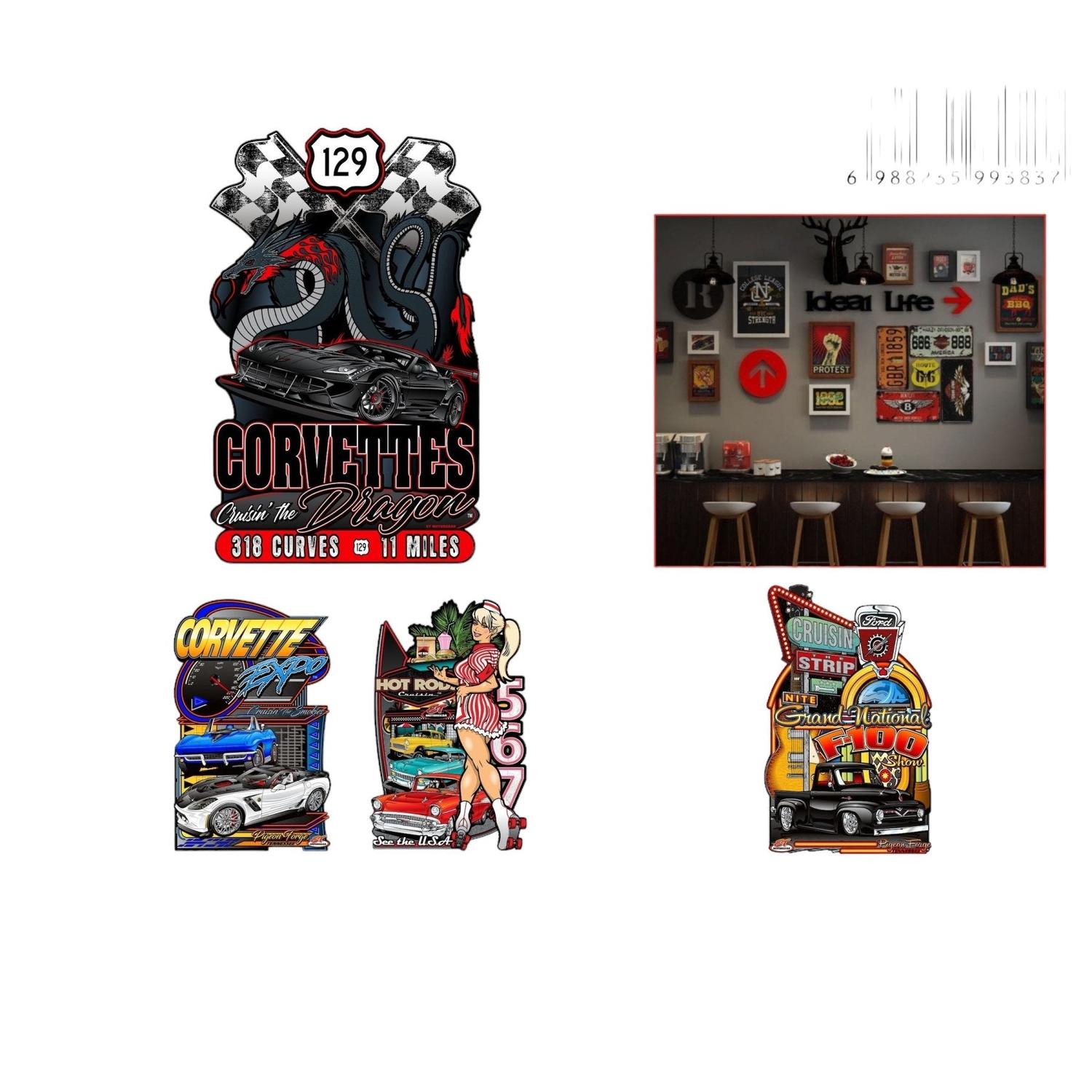 Cartel metalico con dise?o de vehiculos, Dise?o de la corvette expo/ Grand national/Corvette Dragons/See the U.S.A
