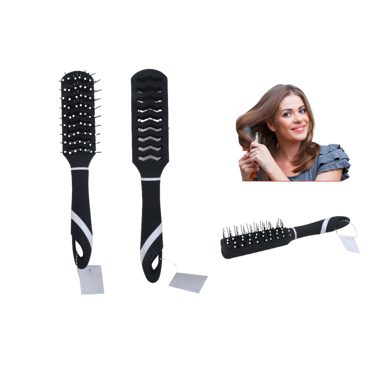 Cepillo esqueleto para cabello, negro con dise?o de lineas blancas
