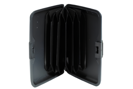 Tarjetero o porta documentos de 10,5x7cm de 6 compartimientos flexibles que se adaptan a distintos grosores para poder guardar mejor
