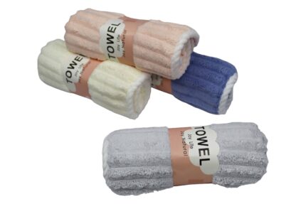Toalla de mano súper suave y absorbente. Mide 35x75cm extendida. Disponible en cuatro colores: Gris, Crema, Azul Cielo y Rosado.