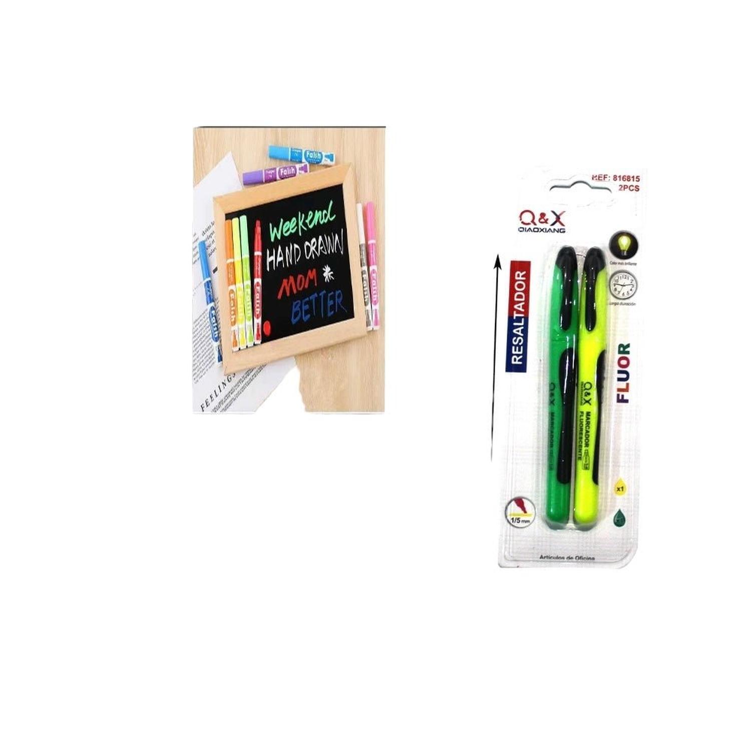 Par de destacadores Fluor color amarillo y verde, punta de 1/5
