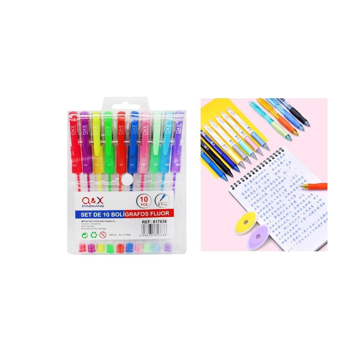 Set 10 boligrafos colores fluorecentes con punta de 0,7 mm