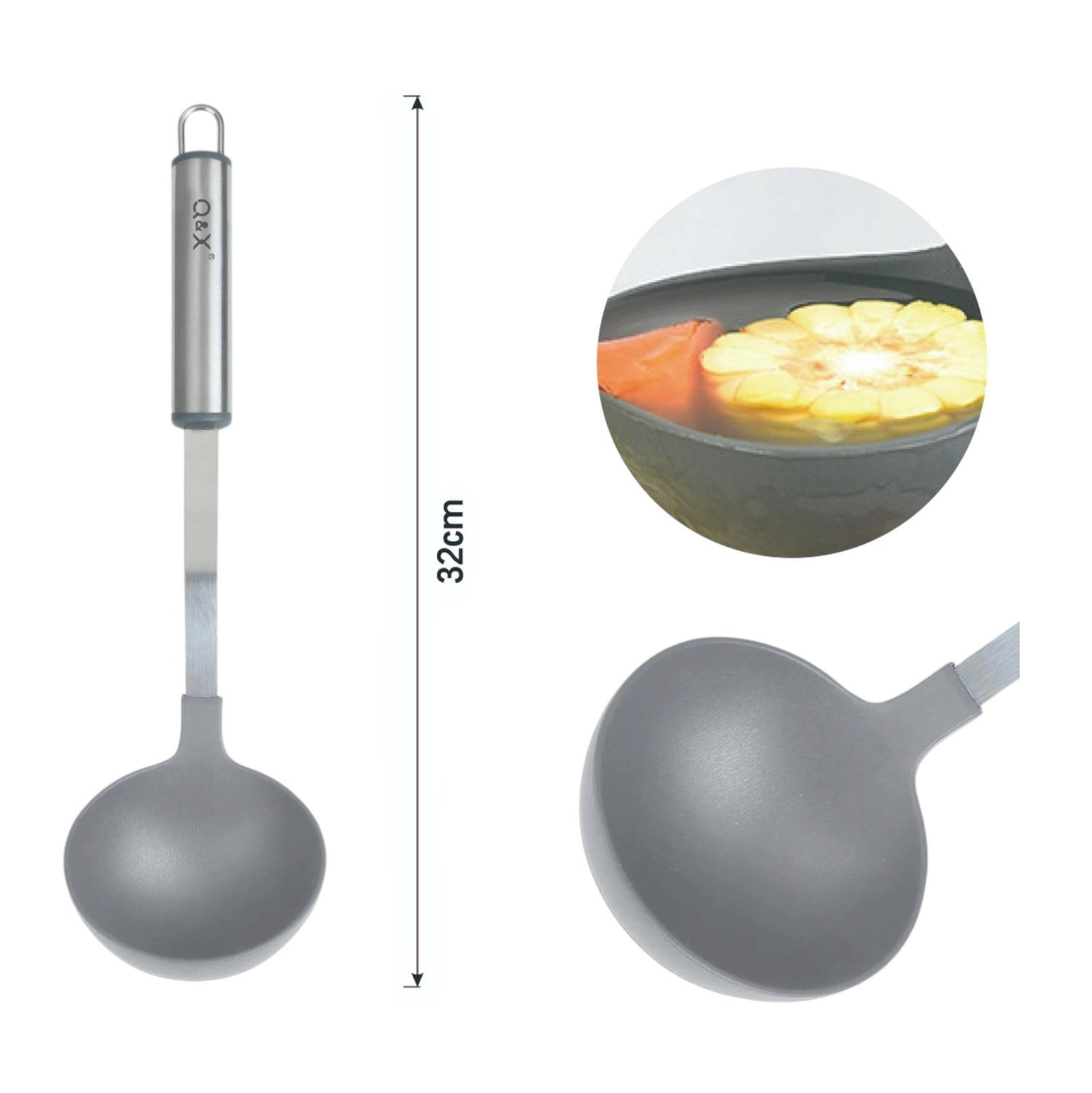 TXM-W06 Cucharón de sopa de nylon con mango ovalado 32X9CM: Cucharón de sopa de nylon, diseñado con un mango ovalado para comodidad al servir.