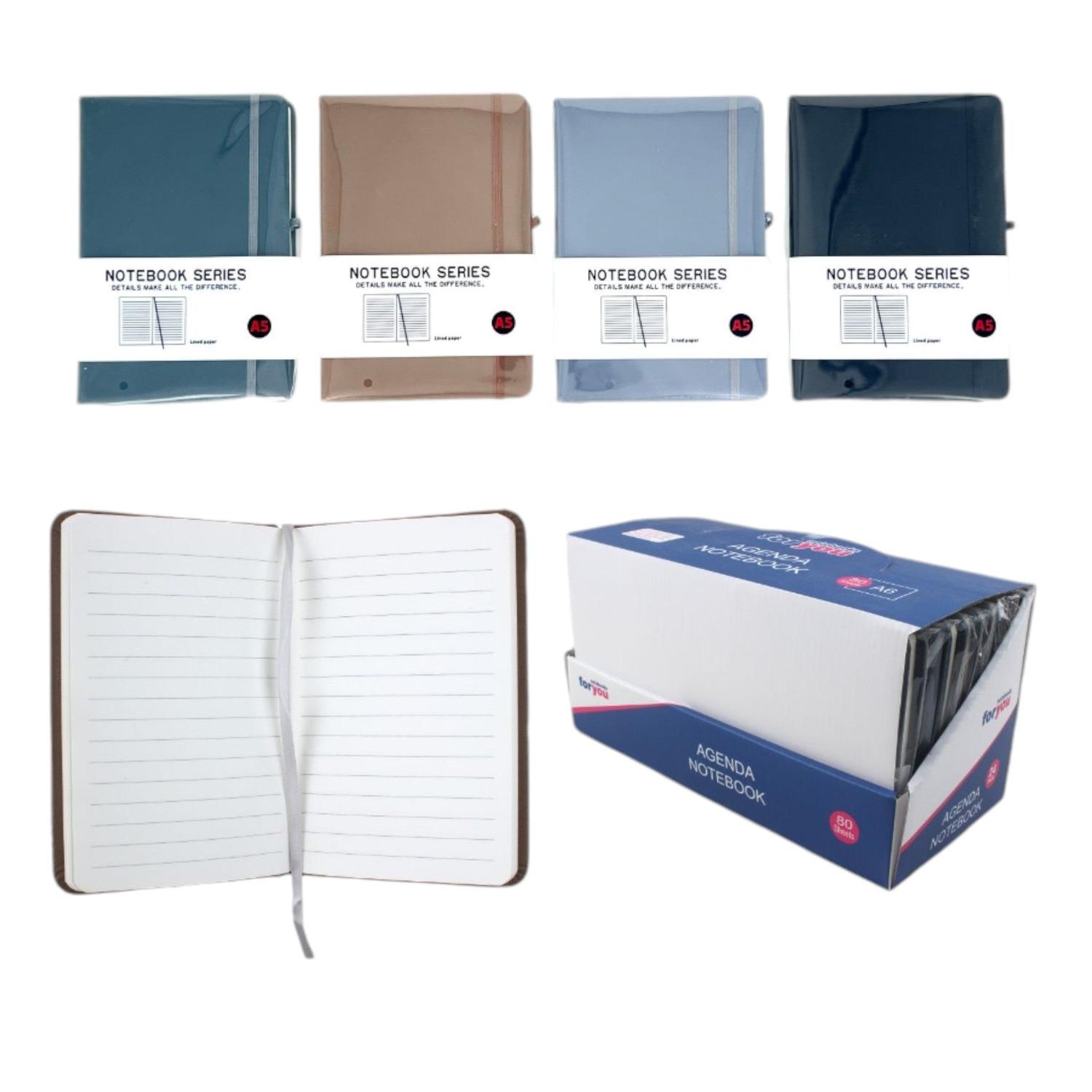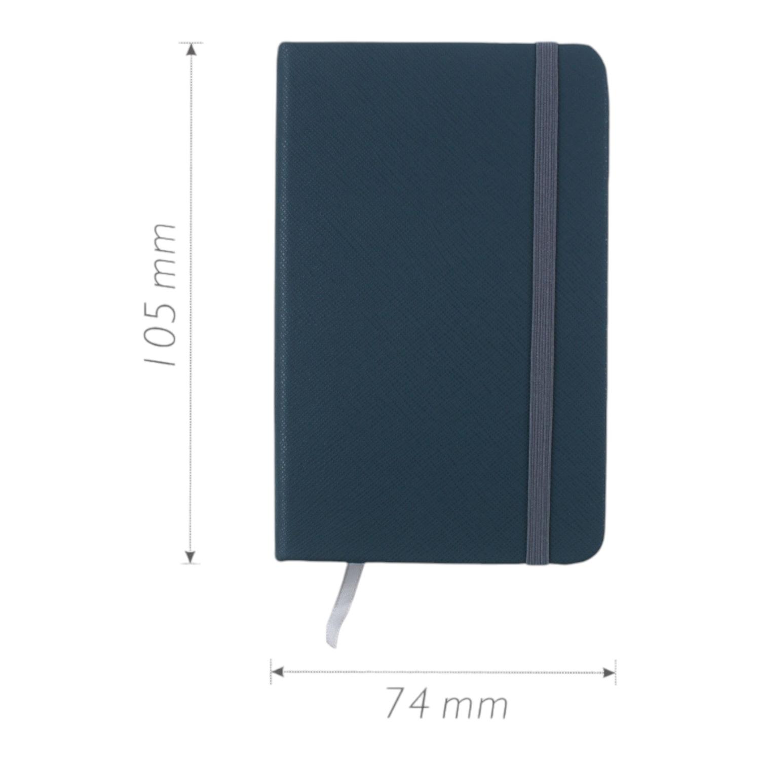 Bellos y elegantes cuadernos con tapa dura, con una medida de 105mm x 74mm, hojas firmes y de calidad con líneas horizontales, en cuatro colores Azul/Beige/Celeste/Verde.